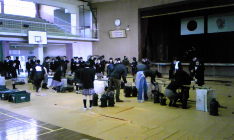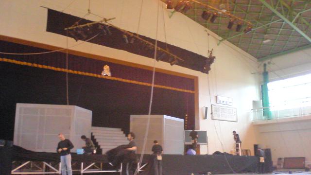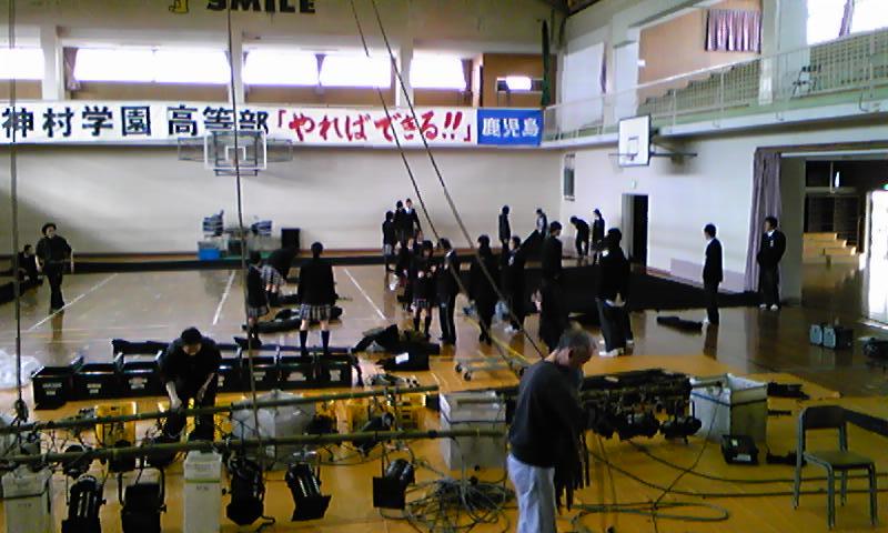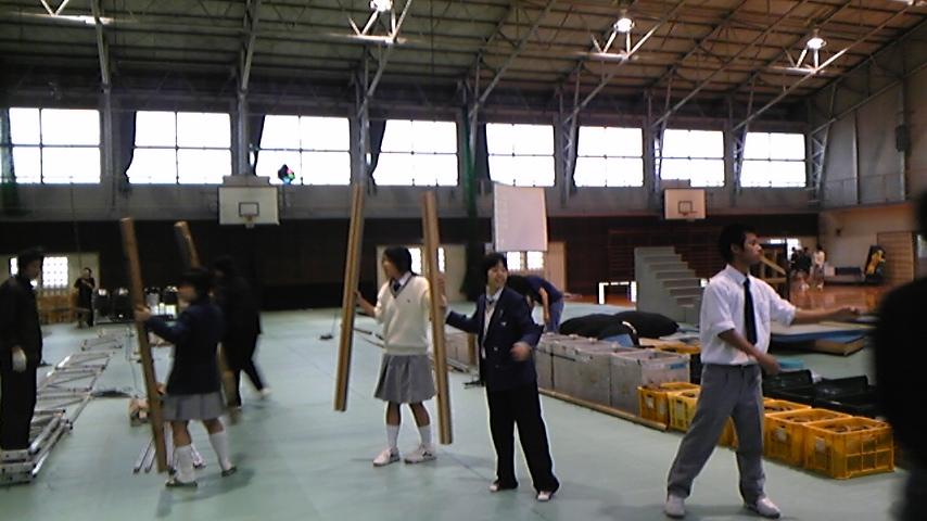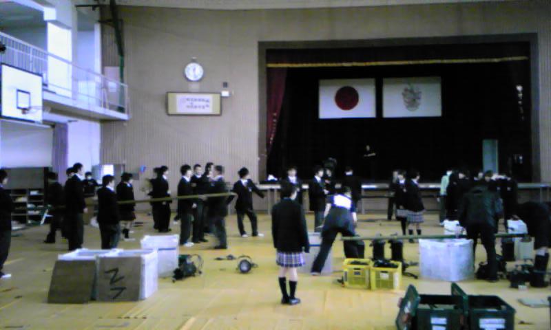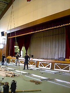 ほぼ一年振りの体育館仕込み、気合いが入ります。荷物の搬入時には男子生徒さん達のお手伝いがありとても助かりました。ありがとう!