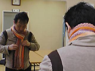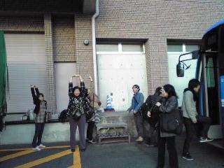 朝、今年一番の冷え込みに体を震わせながら「さあー、出発だ!」と気合いを入れてバスに乗り込もうとしたら、なんと、寒さのあまりバスが動かなくなっていました。しばらくは皆で後ろからバスを押してみたりしましたが、どうしてもエンジンがかかりません。そこで急遽タクシーを呼んで、急いで会館へ。最後の最後まで色々あるもんですね〜。