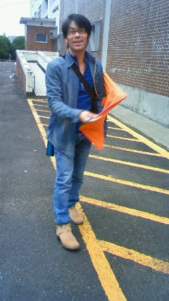 九州へ来てから、暑い日が続いていましたが、今日は少し肌寒く、晩秋を思わせる気候です。連日ノースリーブで過ごしていた真喜志君も、さすがに今日は上着を着用しています。