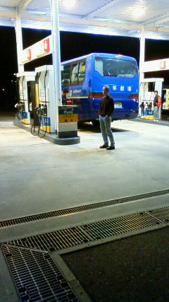 バス運転手二人助手二人は昨日東京を出発しまして一路大阪へ。泉大津港からフェリーに乗りまして12時間かけて九州入りしました。