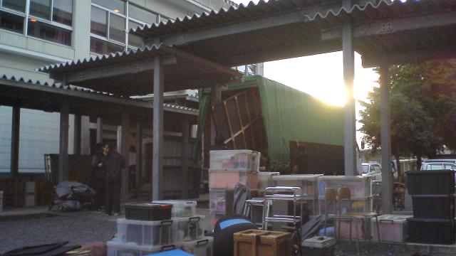 さて、益子で無事千秋楽を終えた私たちは、そのまま3150のセット、機材、衣装等々、倉庫に片付けるべく青年劇場倉庫のある、埼玉県鴻巣市へ→