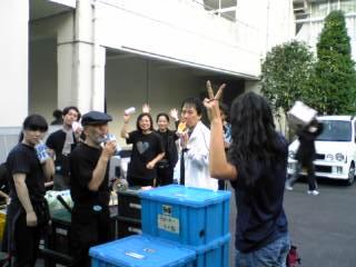 朝一番に会館搬入口の前で、気合い入れの写真を一枚。こうして見ると、意外に大勢いるように見えます…が、仕込みが始まると猫の手も借りたいくらい、忙しくなります。