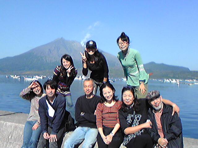 到着した学校からは桜島がドーンと見えるはず…が、あいにくの天気にボンヤリとしかその姿を表してくれずちょっと残念。