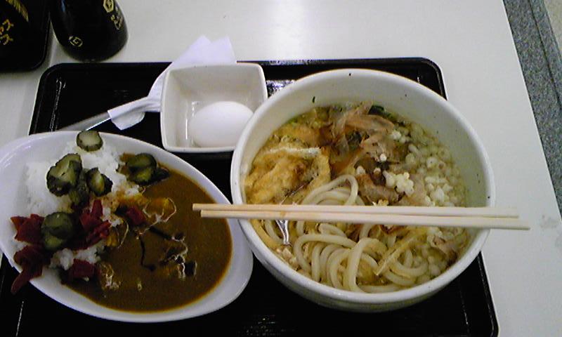 今回の僕の朝食はかき揚げうどんとミニカレーです。