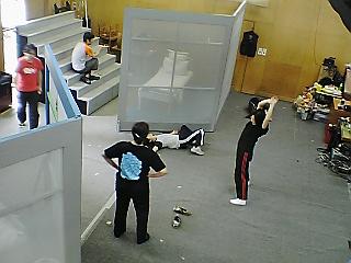 上手く撮れていませんが夕方稽古場に道具を搬入している様子です。みんな頑張っております!