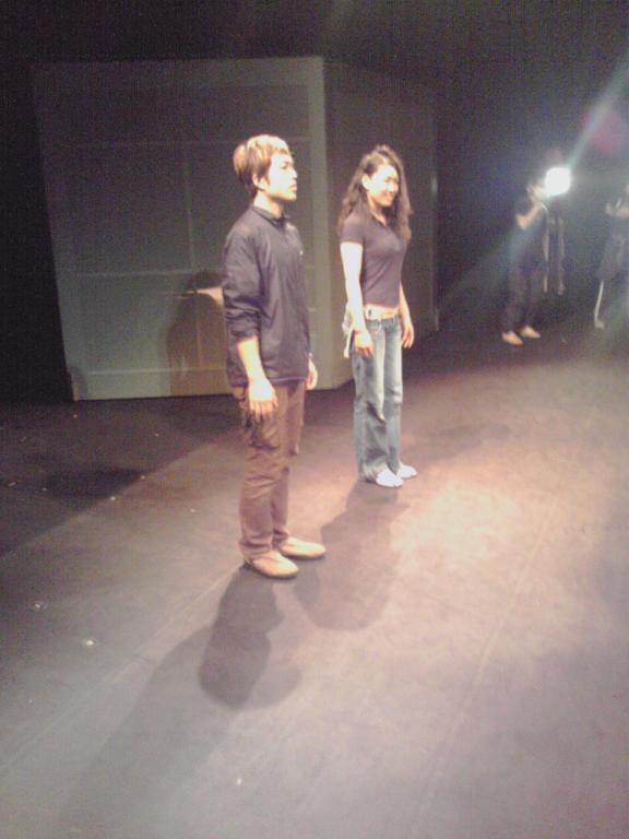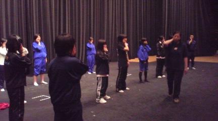 コンパクトな会場で前日から張り出し舞台を組み、当日は当たり稽古と舞台転換の手順を確認しての開演となりました。(客席との距離が近くちょっと恥ずかしい気も…)おとなしい生徒さん達でしたが濃い時間と空間が過ごせたと思います。東北で大きな地震が起きたばかりで、連日報道されているる秋葉原の事件もあってか、生死に関わる事に関し集中点が高かったのではないでしょうか。