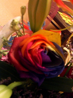 カーテンコールでは珍しいレインボーローズ(?!)の入った綺麗な花束を頂きました。