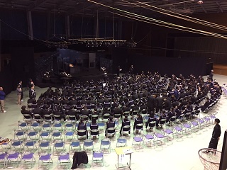 体育館に入ると、普段とは違う舞台におどろきました。