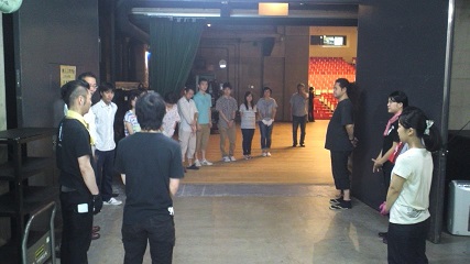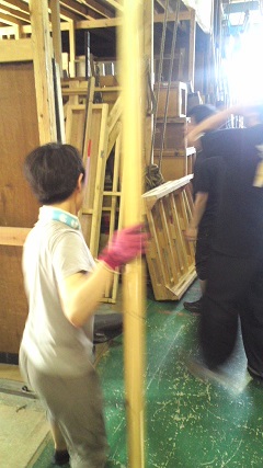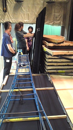 ![]() 2015/7/10 さて『博士の愛した数式』早くも中日を迎えました。本日の会場は川崎市のエポックなかはら。 川崎中原おやこ劇場の皆さんが迎えて下さいました。 ![]() 搬入をお手伝い頂く皆さんに大道具チーフの林田くんから諸注意。 安全に楽しく作業しましょう!