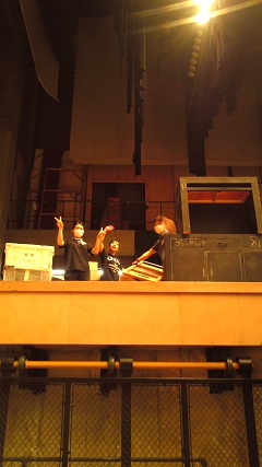 2015/11/19 みなさん、こんにちは!「博士の愛した数式」公演班、照明スタッフの安田遼平です!今日は流山市立南流山小学校の皆さんへの公演です! ![]() 体育館のギャラリーから撮影! 舞台セットが立つ前なので小道具などはまだ置いたまま。ですが音響さんのミキサーやアンプは仕込みがほぼ終わっている…?仕事がはやいですね!! ![]() こちらは体育館の天井を撮影! なんとなく見慣れた方もいるかと思いますが、ロープを使って照明機材を吊っております!今回はいつも以上に複雑!!「蜘蛛の巣みたーい」なんて発言もあったり…(笑) ![]() そしてそれを撮影してるところを激写されてました(笑) 一緒に写っているのは同じく照明スタッフの森川さん! これだけ見ると2人でなにやってんだって感じですね(^^;; ![]() 最後に真面目な写真を! 同じく照明スタッフの杉田さんが照明のコード介錯をしてます!セットの裏の通り道を避けてコードを降ろして、役者さんの邪魔にならないようにする!これ、すっごく大切な仕事なんですよ(^^) 公演は小学生のみんな集中して観劇してくれて、しかも個人的に好きなシーンでとても反応してくれて嬉しかった! また明日からの活力もらえました(笑) では、また!! 安田遼平 |