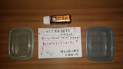 ![]() ここエポックなかはらは舞台の真ん中に「迫り」があって 道具の搬入はここから行います。 お〜いみんな〜! ![]() おやこ劇場の皆さんからのおいしい小夜食。 ありがたく頂きました ルートくんいっぱい食べてね! そして開演。 会場からは小さなお子さんの笑い声も聞こえて来ました。 ご家族で楽しんで頂けたのが嬉しいです! さてさて上半期の『博士〜』残すところあと1ステージです! 高山康宏(舞台監督助手) |
