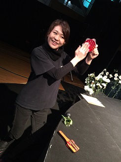 2015/11/25 山梨県甲府市立北西中学校シルクハットをさかさまにして、その真ん中に小さい小さい旗を立てた。それを甲府だと思えば間違いない。と、太宰治が言ったそうな…。なるほど、盆地かぁ〜! 前日の清里での荷積みは風が冷たくて耳が痛くなる程だったけど甲府はそうでもない。だけどやっぱり冬は近づいているので体育館はシンシンと冷えます。 ![]() 今期初、体育館用の大きなストーブ。その名も「ホカット」!好きですよ、小林製薬みたいなネーミング。私と並ぶと大きさがわかってもらえますね! ![]() 男性陣はギャラリーに上がって幕を吊ろうとしています。がんばれぃ!! 生徒さんたちは本当によく観てくれました。 途中、「はー、マジ面白い」と聞こえて心の中でガッツポーズ*\(^o^)/* 先生とも少しお話して、「愛を伝えることなんですよね…」と静かに語ってくださいました。 観ている方も寒いだろうに、集中してくれる事に感謝します。 体育館コースもあと少し。 体調に気をつけてまいります! 永田江里 |