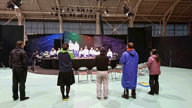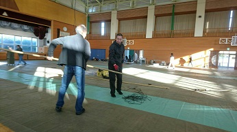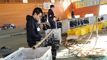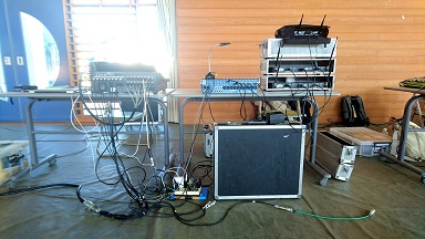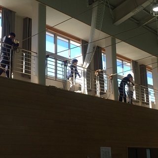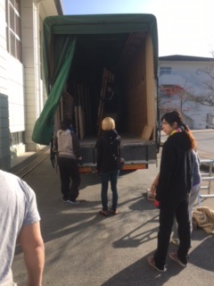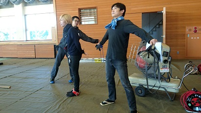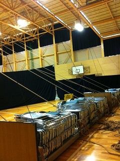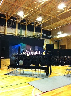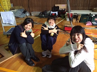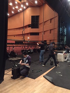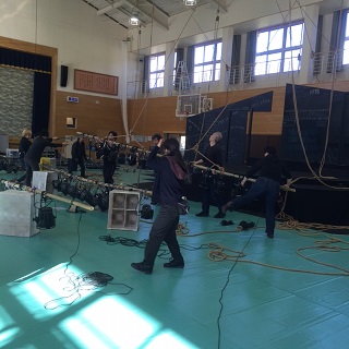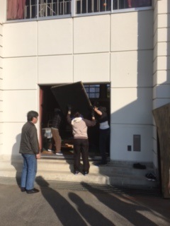 2016/11/25 本日は〜、“強く・正しく・たくましく”の高萩中学校です。昨日の雪に比べれば、今日はとても暖かいのです。日向がとても暖かいのです。 ![]() 広ーい体育館。学校の先生にご挨拶の後、搬入の開始です。 ![]() 真っ先に降ろされる“ナベスペ”。それを操るは細渕さんと河崎さん。 ![]() 日向は暖かいけれど、陰になってる場所は寒い寒い。搬入終わりにヒーターの前で体を温める照明さんたち。 ![]() 音響の石井さんと私は音響機材を取り出しコードを繋げ、繋げ、繋げ…。