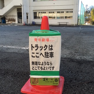 ![]() 2016/11/9 11月9日塩山北中学校。博士の義理のお姉さん役を演じています。名川伸子です。 景色の良いところ、山が綺麗です。 ![]() 学校に到着するとトラック駐車の看板がありました。 ![]() 2年生全員が職場体験ということで、荷下ろし、椅子並べ、荷積みをお手伝いしてくれて、仕込み中はみんなで見学していました。