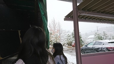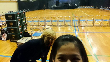 2016/11/24 ただいま大子町立南中学校に来ております。今日の天気は雪。 まさか11月に雪が降るとは思いませんでした。 寒さのあまり養生テープも勝手にプツプツ切れます。困ったもんです。 ![]() この地域は普段はあまり雪もふらないそうです。先生も生徒達もお弁当屋さんも普段はこんなことないんです!っと言っていました。 担当の先生は今日ほど天気予報が外れてほしいと思った日は無かった!なんて言っていました。 それでも先生方がいろんな教室からストーブを集めてきて下さいました。音の出ないストーブを、というのは大変でしょうに…。これはとても助かりました。裏は舞台と違って照明もなく寒いものですから!でも今日は舞台上も寒かったらしいです。出演者は薄着だし大変だぁ…。 ![]() Ω(オメガ)とΣ(シグマ)と一緒に舞台に立った子達も今日は厚着してます。それでもやっぱり子供たちはパワフルでした。 20代と10代の違いって大きいなぁ…。 池田咲子 |