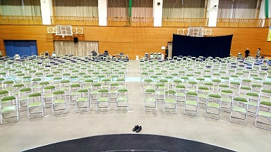![]() そうして、あっちこっちの部所を皆が皆お手伝いして舞台が建ちます。 窓から差し込む光をバックに立つセットのかっこよさよ! ![]() 白バラもいつもと違う輝きです。 体育館に現れる非日常。 ![]() では、生徒さん入場前に撮影した、舞台からの風景をお届けします。 じゃん。 ![]() 生徒さんが着席されました。 じゃん。 2時間と少し、生徒さんたちは、特に数のお話になると、静かに、興味深そうにお芝居を見てくださいました。 終演後の座談会は、生徒さんたちと打ち解けて盛り上がったそうです。 ![]() ………? コケッ。 コケッ。 こんな音が当てはまるのです。 さてなんの音でしょう…? 本日の仕込みの最中にもおこっていました。シートのたるみとか、舞台の段差とかに足を引っ掛ける方たちがちらほらと。私もその一人。 旅の始まり辺りには見られなかったことです。解消しきれなかった疲れが出ているのでしょうか。 まあ、そんな疲れも、生徒さんたちの舞台を見る楽しそうな表情でぶっ飛びます ( ・_・)ノΞ●~* お世話になりましたー! ありがとうございます! 傍島ひとみ |