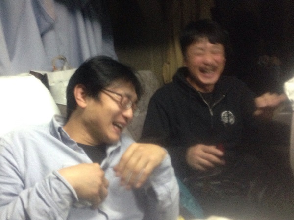 写真はバス内にて。 大道具の兄貴たちが男子会をしてました笑 (右:井上さん・左:船津さん) √小泉美果 |