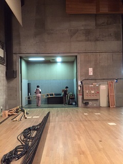 今回は習志野文化ホールでの公演です。 建物の5階に劇場があるので^^;トラックの荷物をリフトに乗せて運びます!