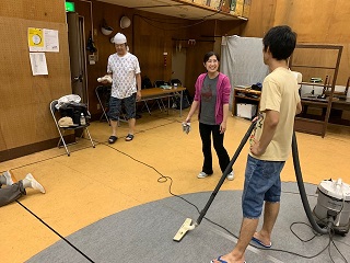 2019/8/14 まず、稽古はお掃除から。飯沢先生の久しぶりの公演です。本当に良く書かれた作品で今更ながらため息がでます。だからこそ、そこに生きた人間をどう存在させるのか、老いも若きも四苦八苦、でもなんだか凄いものが産まれそうな! どうか楽しみにお出掛け下さいませ。