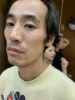 2019/7/30 稽古5日目です。読み合わせを今日も緻密に…。 日常がベース、それを変えていく侵入者(勿論人だけではありませんが)そこから転がり始める劇世界! 稽古場の床には舞台装置をイメージした線が引かれ、立稽古の準備も…。 暑い熱い外世界に負けない日々が続いています。 中谷源(副官役) |