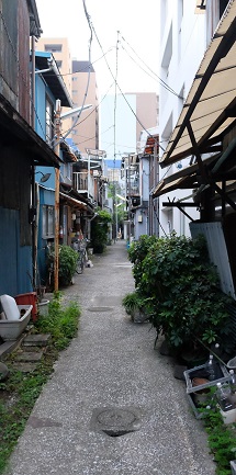 「もう一人のヒト」で舞台となる東京都中央区月島。地下鉄を降りて、地上に上がると高速道路に高層マンションが建ち並び、一見してみると昔の面影など全く残ってないように感じますが、ちょっと裏路地に足を踏み入れると狭い路地に家屋が向かい合って建ち並んでおり、どこか戦前からあった月島の風景があるように見えます。 作中で登場する杉本一家や鈴川一家、或いは町の人々はこういう所に住んで毎日歩いていたのでしょう。 以上、「けいこ場便り」と称して月島散策レポートをお送りした区役所の吏員役、津曲海七斗でした。 津曲海七斗 |