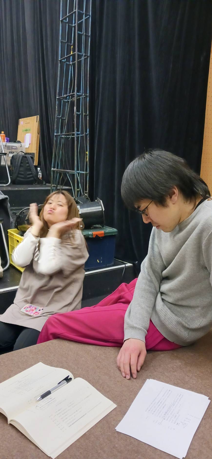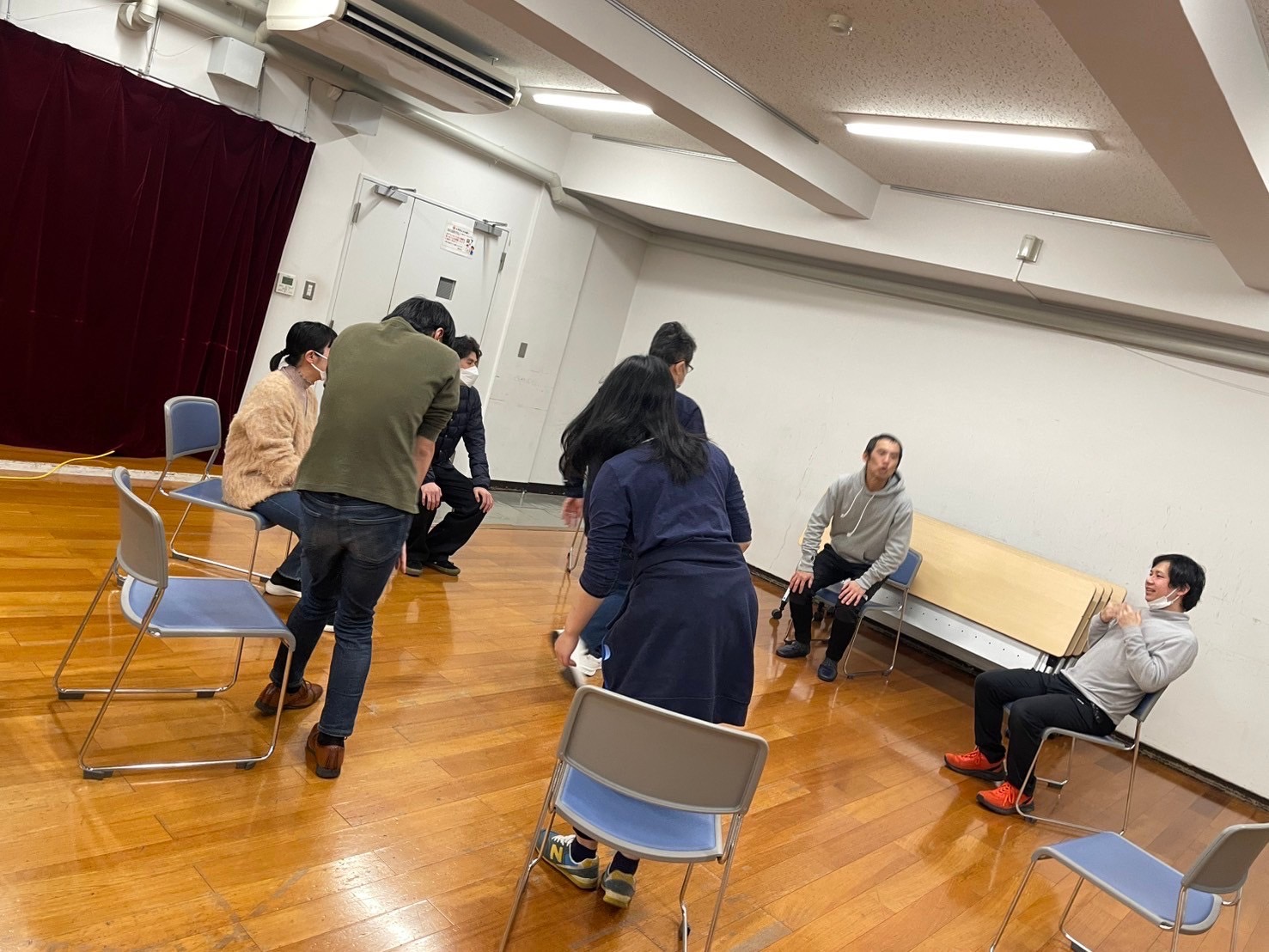 今日は「0場」、登場人物たちがここまでどうやってやって来たのかをエチュードで作りました。それぞれの思いや抱えていることなど、台本に描かれていないこともたくさん盛り込みながらやりとりし、作品の世界がより広く鮮明になってきました!