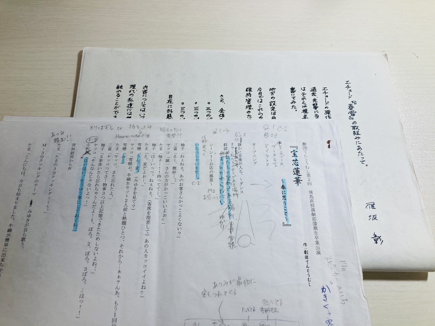 実家で本棚を整理していたら懐かしいものを見つけた。高校3年生の3月にやった卒業公演の台本…。