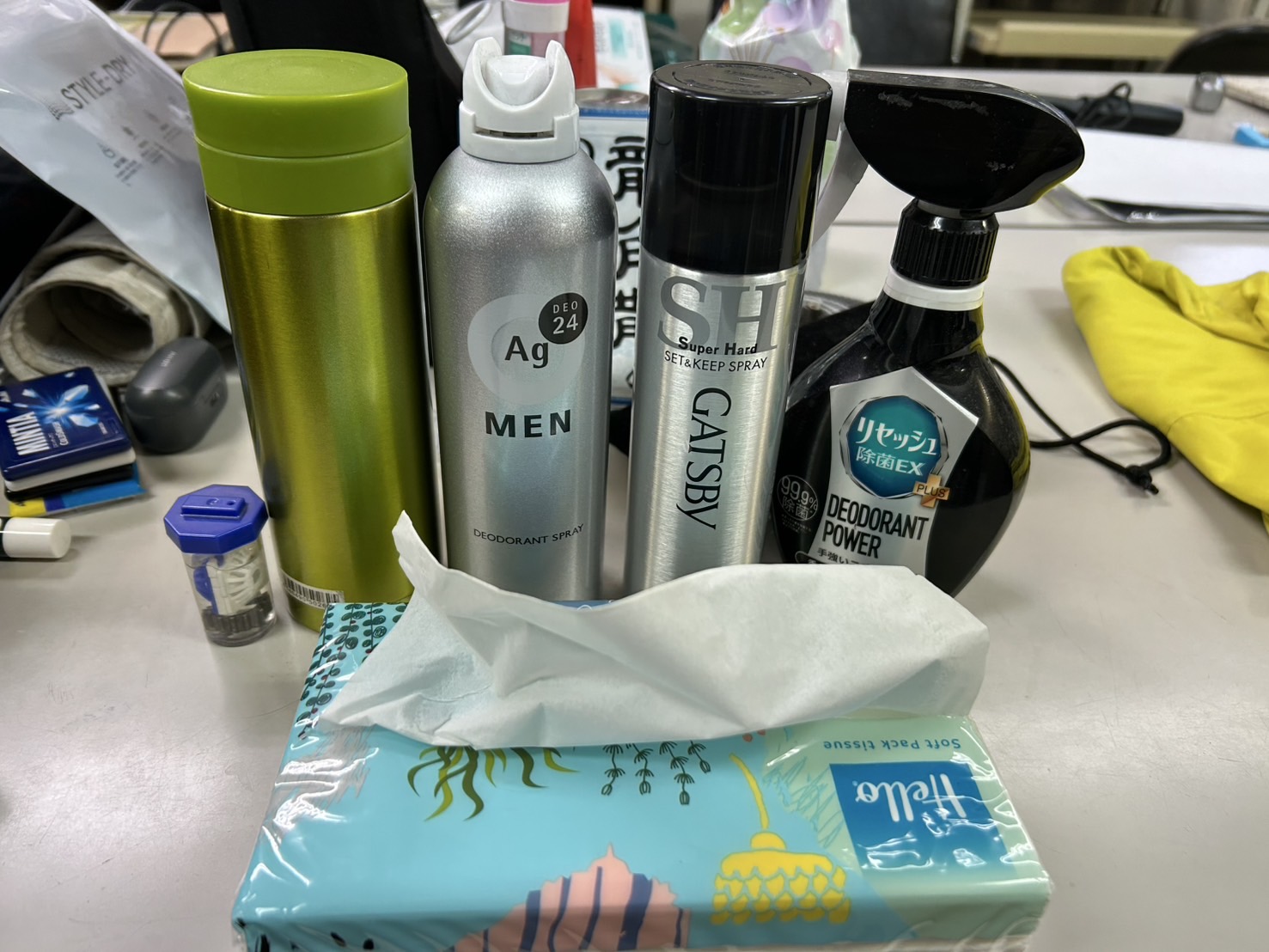 コンタクトケースやら、水筒やら、制汗スプレーやら消臭剤やらティッシュやら…。