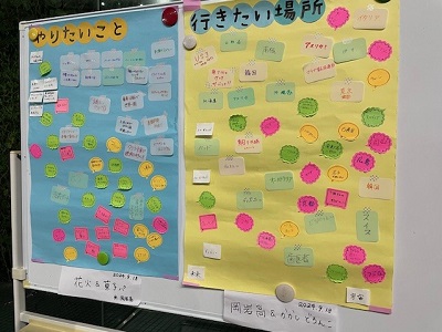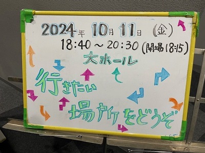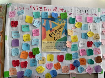 対面式でロビーに行くとみんなの行きたい場所・やりたいことが!公演班みんなで読みました。