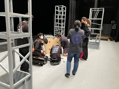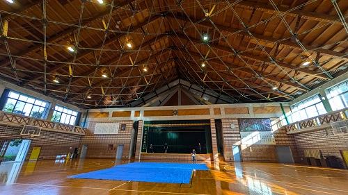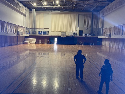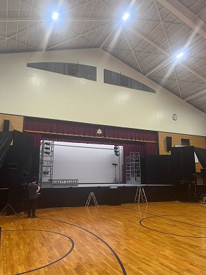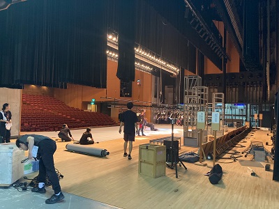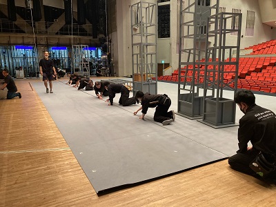 学校公演では体育館での仕込み公演もあります。