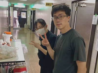 掃除の後の夕凪役の原田さん、光莉役の竹森さん。
