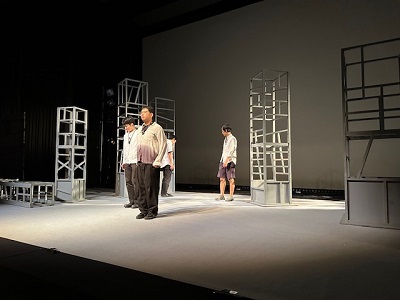 昨日に続いて生徒さんは暑い中での観劇となってしまいましたが、劇中笑いやどよめきが聞こえ、楽しんでくれているのが伝わってきました。