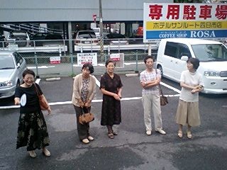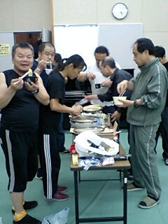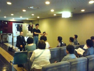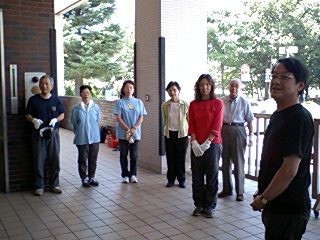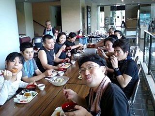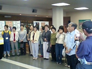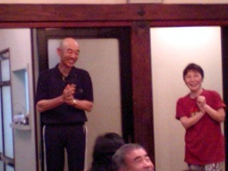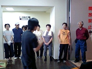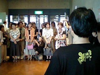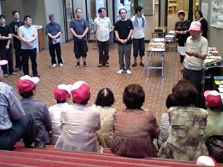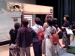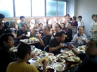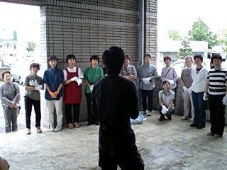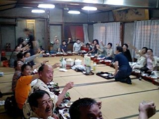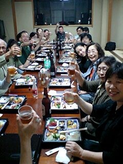 そして我々公演班を暖かく迎えて下さる、ご婦人を中心とする鑑賞会の皆々様!その中に、なんと今年入団した、地元出身の岡本有紀さんのお母さんもいらっしゃり(写真の中で、真ん中でお辞儀をしていらっしゃる方です)いつにも増して、対面式はフレンドリーなムードでした!北直樹