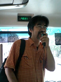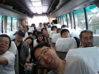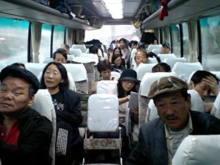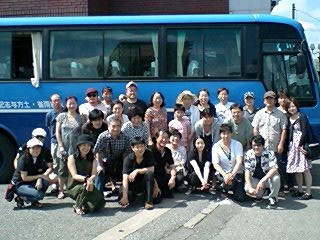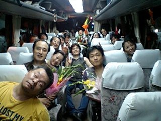 終演後、メンバー全員がバスにて、打ち上げ会場となる「民宿東度の家」へ移動。車中でのスナップには、疲れの中にも充実した仕事をやり終えた安堵感と満足感の顔が溢れています。「東度の家」での打ち上げの様子は、続編にてお伝えしたいと思います。いよいよ次回、最終回です!