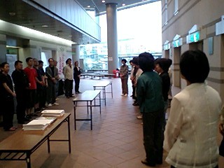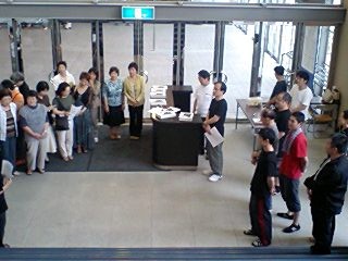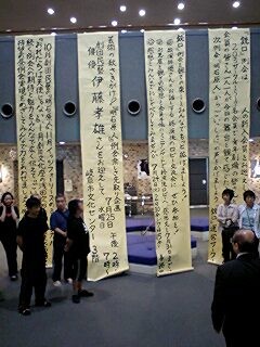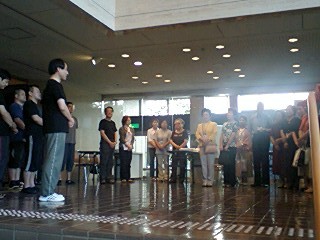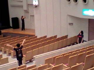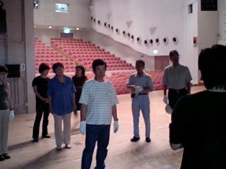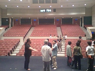 対面式のスナップでもお分かりのとおり、ロビーは勿論、客席も含めて全てが「大きめ」の会場ではありましたが、会員さんの拍手はとても温かく、公演班としては「中日(ちゅうにちではありません。なかびです)」をイイ形で終えられ、後半の公演に向けての弾みがつきました!