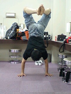 「元気にやってますよ!」というメッセージを逆立ちで表現してくれたのは、我らが北森竜太・船津君。こうして、一同元気一杯に名演公演に臨みました!この続きは後編にて・・・・。