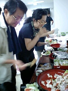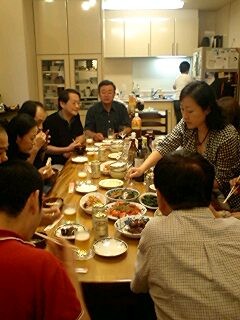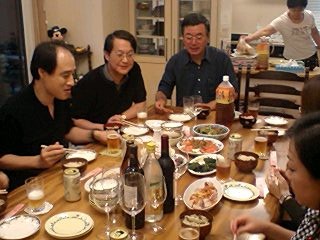 金沢では野々市公演の翌日が休養日となり、何人かの劇団員は運営委員長の北市先生のお宅に招かれて、先生と奥様の「共同製作」による手料理に舌鼓。美味しいお酒と共に、楽しいひとときを過ごしました。