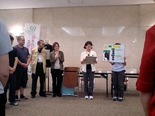 会の後半には「お楽しみ抽選会」が行われ、五人の幸運な(?)会員さんが、それぞれのプレゼンターから全員のサイン入り色紙を受け取られました。