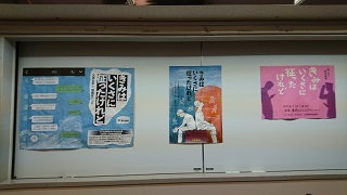 普段は明るい二人もこの時ばかりは真剣です。 慣れた手つきで滞りなく作業が進み、あっという間に対面式の時間、 ロビーに行くと、この作品のイメージを 良く捉えた素敵な手作りのポスターで迎えて頂きました。 ありがとうございます!