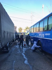 トラックの運転ありがとうございました!高山さんの写真はTwitterに上がってるので、是非見てみてください(笑) そして今日は来年年始から動き始める「キネマの神様」 公演班のメンバーも来ていて稽古道具を荷積みしました。 中部・北陸の演劇鑑賞会の皆さま、楽しみに待っていてくださいね! (私はいけませんが。。。) そしてそして、メンバーが多いので車両の洗車を行いました! バスもトラックもお疲れ様でした。 感謝の気持ちを込めてみんなできれいにしていきます。 真冬のしかも寒波の厳しい日なのでみんな手がかじかんだかもしれないけど、 けっこう楽しそうでした(笑)