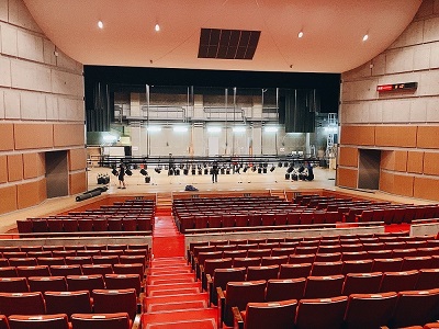 2022/7/5 前日の仕込みも無事に完了し本日は豊川高校さんの講堂での本番ですそれにしても学校にこんな立派な講堂があるなんてすごいですね 一般的な会館のように照明器材も吊ってあります