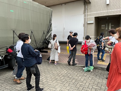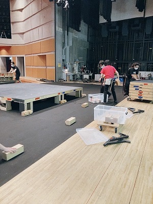 2022/6/9 本日は高輪中学校での公演、そして初日です!なんと今回の劇場はトラックごと下に下がって搬入するというなんとも心をくすぐられる会館でした
