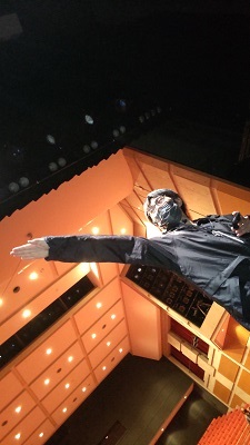 こちらは一緒に照明を仕込んでいる役者の高山くんです。 自分の便りの時は何度も登場するのでお馴染みですね。