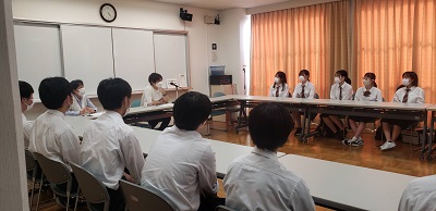 1ステージ目が3年生、2ステージ目は1,2年生でしたが、 本当に食い入るように舞台に集中してくれてカーテンコールもいい拍手を頂きました。 2ステージ目の終演後に座談会があり、宮斗役の林田さんが参加してきました。 生徒さん25名、先生10名参加の中、途切れることなく質問や感想が出たそうです。 「芝居中、泣きっぱなしだった」 「椅子だけの舞台で色んな場面が見えてきて面白かった」 「宮斗が殻に閉じ籠っていたのが、 色んな人に出逢って主体的に変わっていったのがよかった。 昔の自分と重なった」etc. 1,2年生は文化祭で演劇発表があるそうで、 座談会後も搬入口に生徒さんが宮斗と浩三を訪ねて来て、 照明のことなど熱心に聞いていました。
