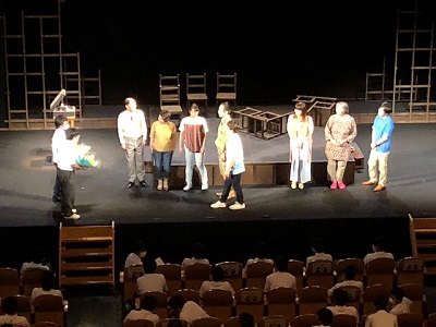 会館の方の協力もあって無事にセットが立ち公演することが出来ました! 袖からですが、生徒さんも真剣に舞台を観てくれていた様に感じます。 何か前向きになる「きっかけ」になってくれていれば嬉しいです。 次の公演も精一杯頑張ります!! 舞台監督 安田遼平 |