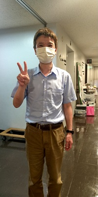 そして、もう一人のピースの人は専門製作者・演劇鑑賞会担当の久保田敬博さん。 今日は、秋に実施が決まっている 札幌の演劇鑑賞会の方々が遠路ご観劇されるということでその対応で来班。 秋の北海道楽しみだな〜。 そしてそして、この方の登場です。