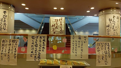 2022/7/17 上半期のラストステージは、きたく子ども劇場と劇団の共催公演です。きたく子ども劇場には、 劇団員家族が会員になっていて、 会員の皆さんと日常的に関わりがある劇場です。 今回の公演に向けて、 竹内浩三について学習会を開いたり、ニュースを発行して、 作品について深めてくださっていました。 ロビーには、平和資料館のパンフレットや 平和に関するイベントなど沢山の資料が置かれていて、 興味を持った人が持ち帰れるようになっていました。 その他、スタッフ用の名札や栞、飾り付けなど、 手作りの温かさに溢れていました。