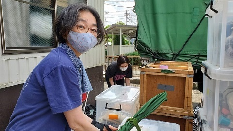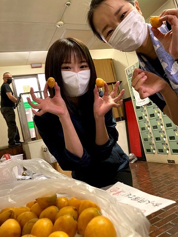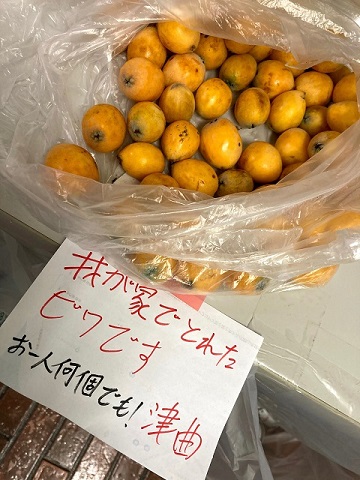 みんなの憩いの場でもあります。 こんな風に湯沸しポット、コーヒーメーカー、急須などの必需品を常設します。 コロナ禍でお通しなど食品関係は、個包装以外は遠慮いただいていますが、 今日はスタッフで参加しているTくんが、お母さんが自宅庭の琵琶を収穫してくれたとたくさん持参してくれました。