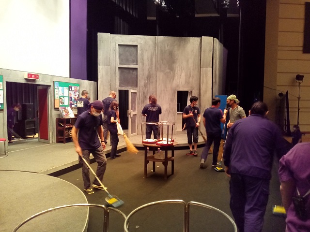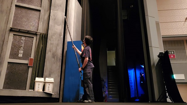 宿の前の道路は路面電車も走っていて、「ごめん」行きがありました。なんか昔VOWで見た気がして、ちょっと嬉しくなりました。ご存知ですか、VOW…。 さて、今日も会員さんと搬入です。 キネマのセットには大きなパネルが何枚もあるので皆さんの力が本当にありがたい! この部品はどこに使われるのかしら?なんて会話も楽しいです。 対面式では私たちを楽しみに待っていてくださった様子がよくわかりました。 期待に応える舞台を! 開演前、舞台監督は言います。 「今日も抜かりなく」と。 舞台に立つキャストだけでなく、我ら裏方も芝居を創る一員なのです。 今日も集中して参りましょう!!