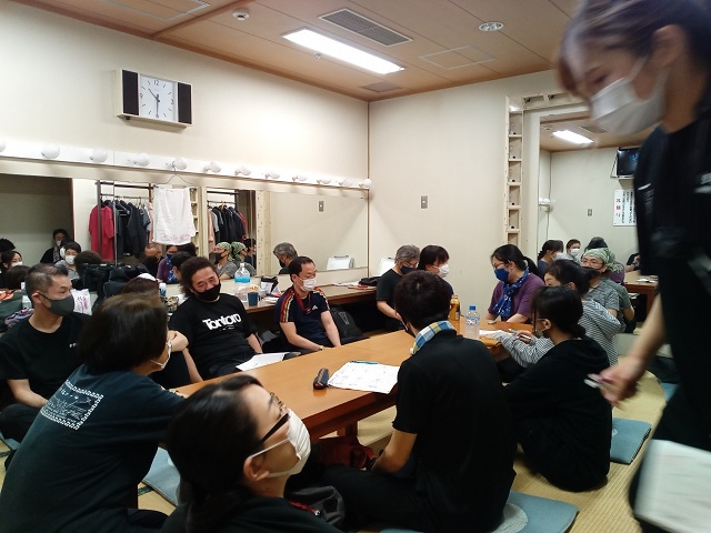 対面式では、「どんなに貧しくても貧しくても貧しくても、芝居は必要なんです」と会員さんが話してくださいました。なんて嬉しい、素敵な言葉…。 本番中はお芝居を楽しんでいる様子が舞台裏まで届いてきました! 大きな声で笑えないからでしょうか、劇中に拍手が起こり、カーテンコールでは2〜3列目に座っていた会員さんたちが舞台のほうへ手を伸ばしながら拍手してくれました。 今日、明日、明後日。そして、四街道会場までよろしくお願いします! 映像/そばじまひとみ |